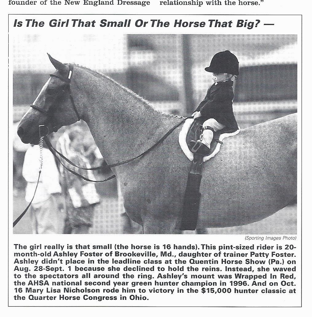 This photo of Ashley was taken in June of 1997 at the Quentin Horse Show in Pennsylvania. Be sure to read the caption below…how cute is that?