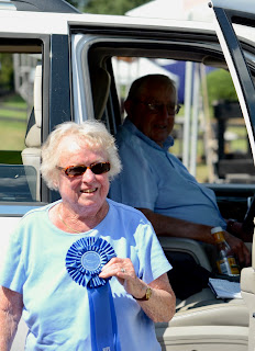 Mrs. Nicholson with Bling Bling’s winning ribbon |